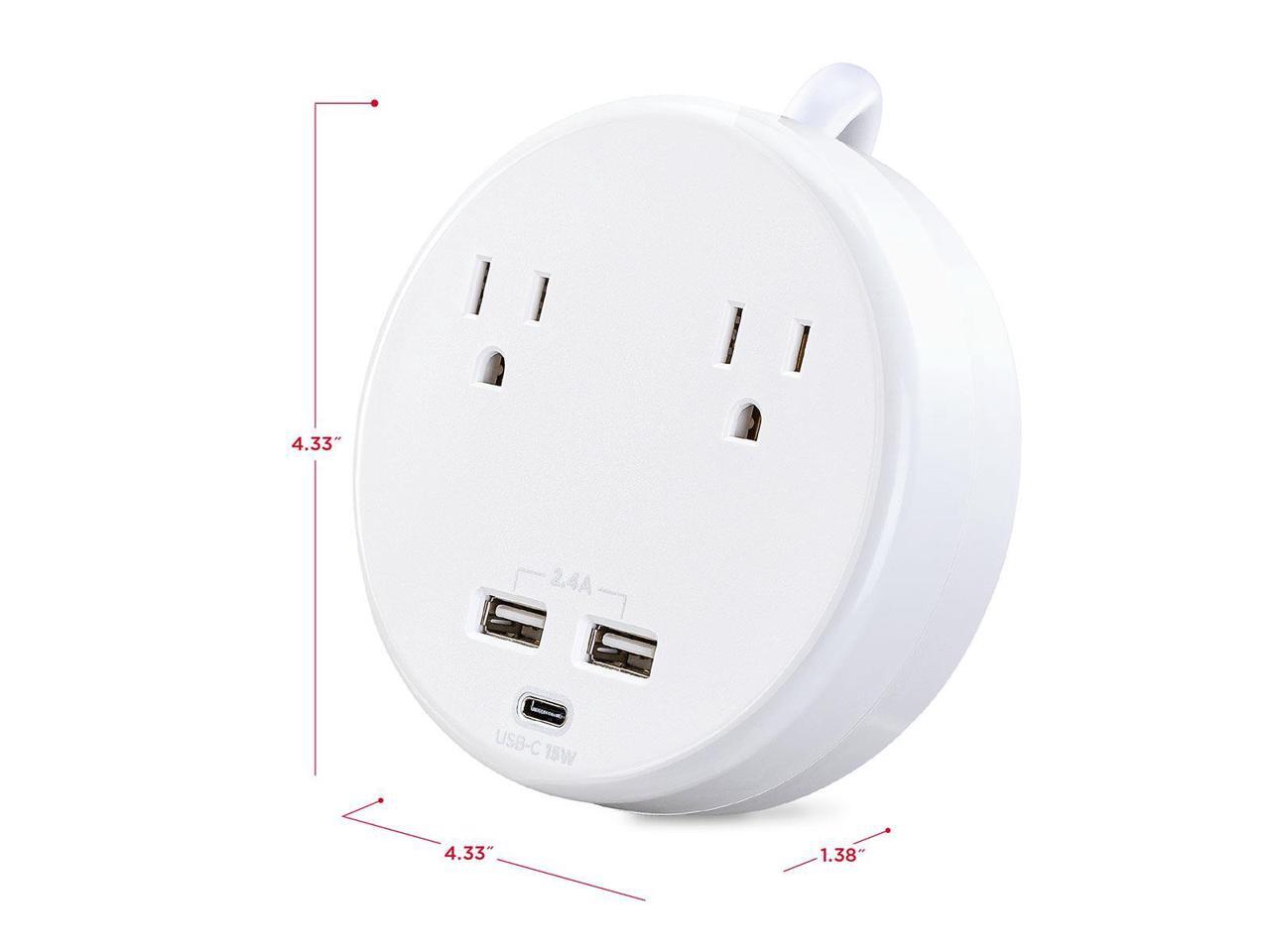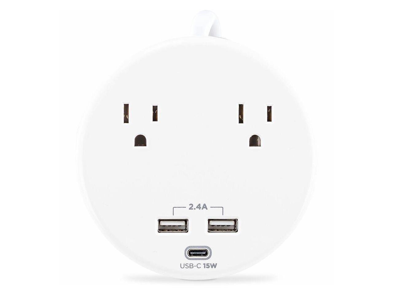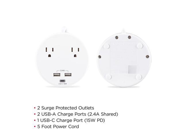 - VERSATILE POWER - Features 2 NEMA 5-15R outlets for standard plugs, ideal for home or office, maximizing space with a round design and a 5-foot cord for flexible placement.