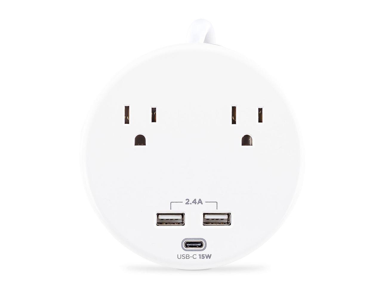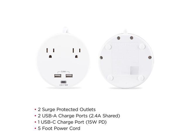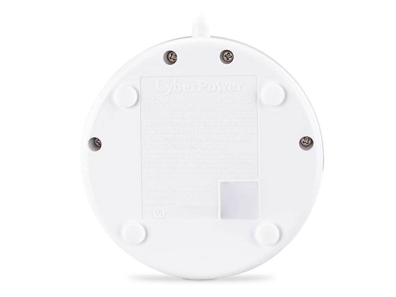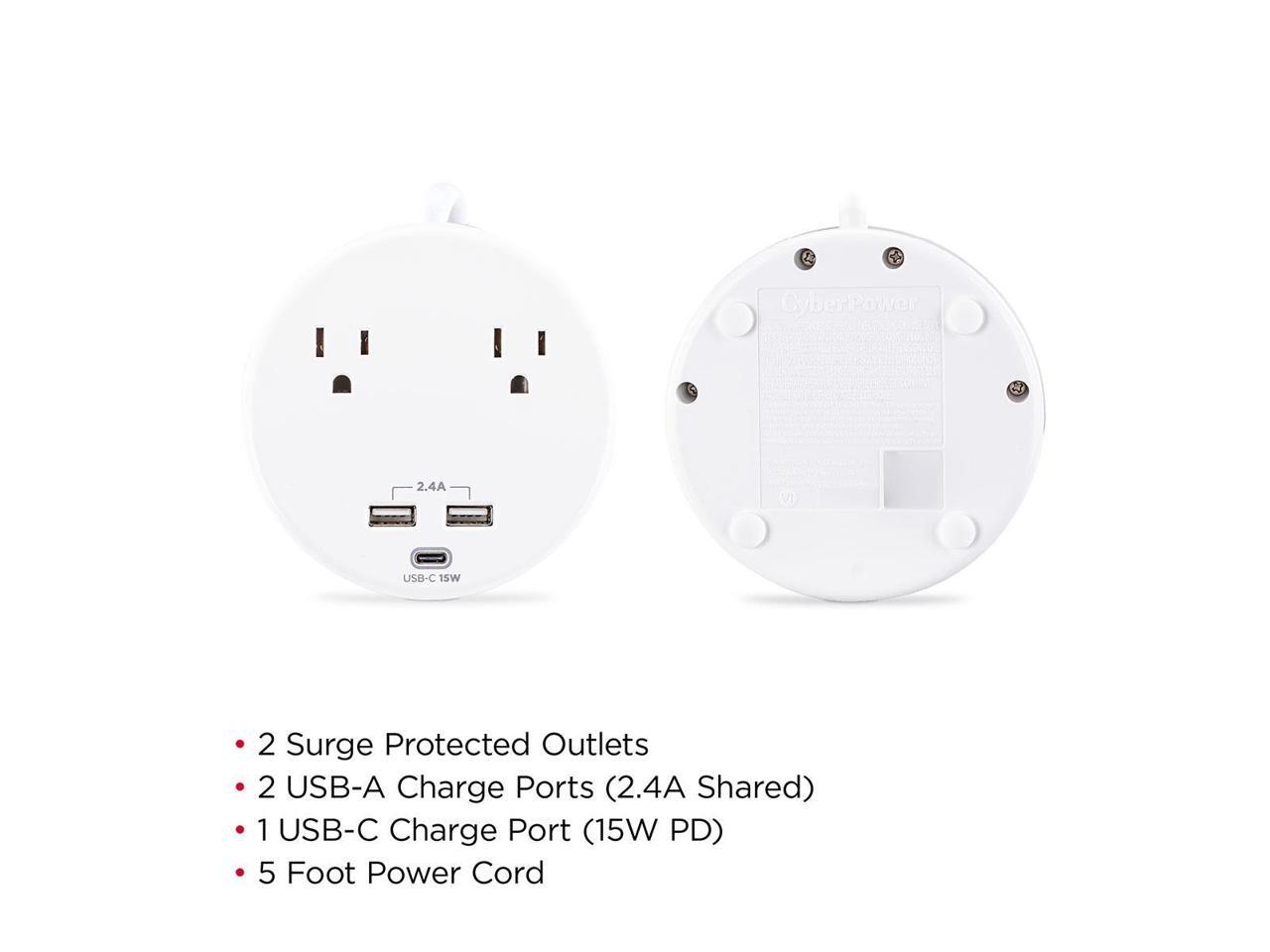 CyberPower P205UC 2-Outlet Round Surge Protector with 2x USB-A and 1x USB-C Port, White