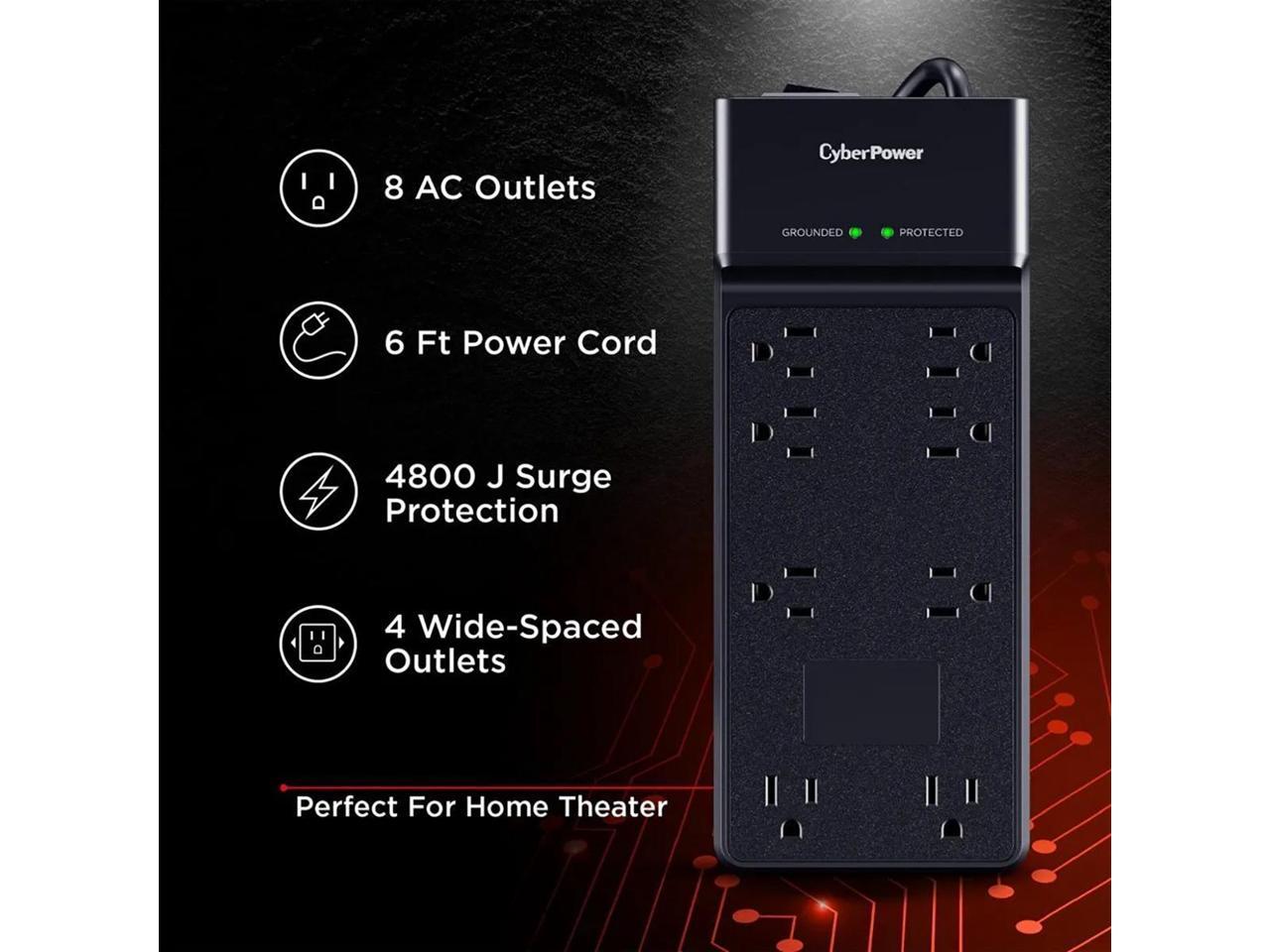 CyberPower CSB806R1 8-Outlet Essential Surge Protector with 6' Power Cord, Black