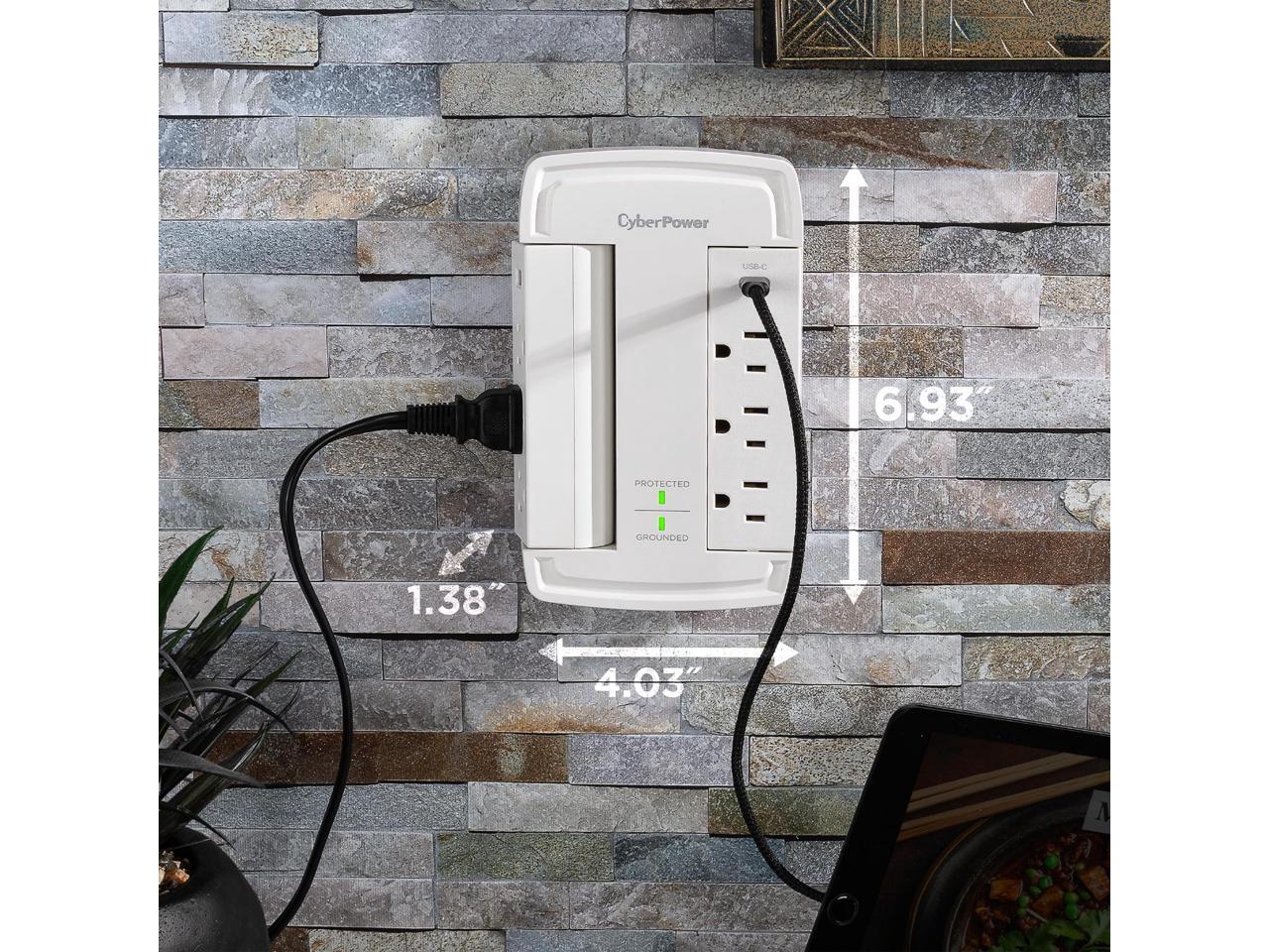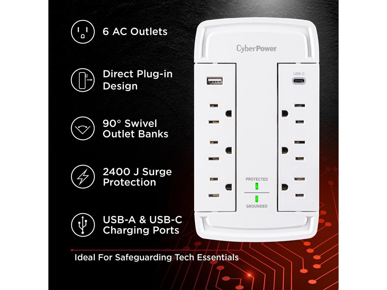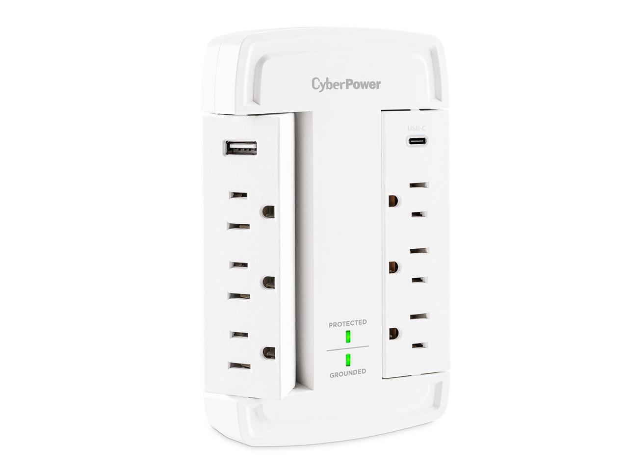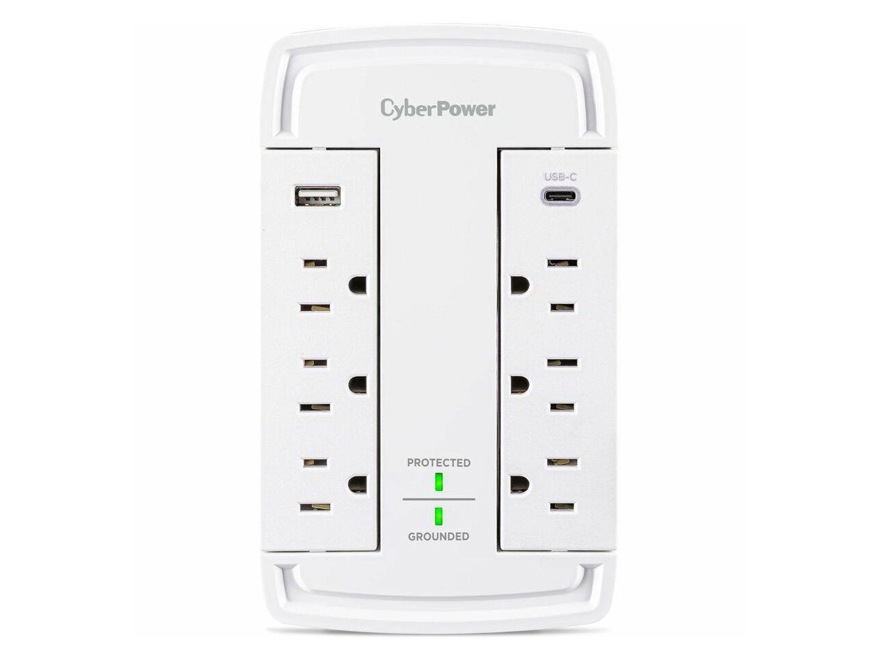 CyberPower CSP6WSUC 6-Outlet Wall-Tap Surge Protector with USB-A and USB-C Port