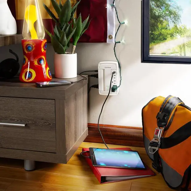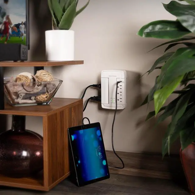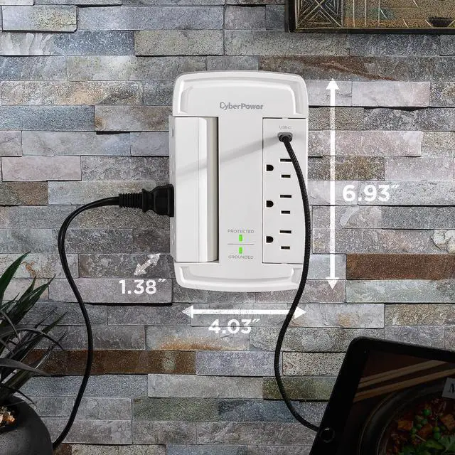 The CyberPower CSP6WSUC Wall-Tap Surge Protector with USB charging is designed to protect essential home and office electronics, including computers, networking equipment and other devices from power surges and energy spikes caused by storms and electrical fluctuations. Offering 2,400 joules of surge protection, this unit features six surge-protected AC outlets, a USB-A port with 2.4A power output, and a USB-C port delivering 15W of power, ensuring efficient charging for mobile and USB-enabled devices.