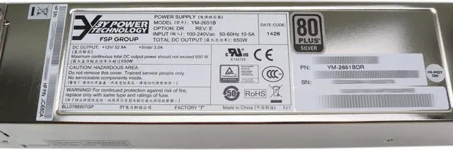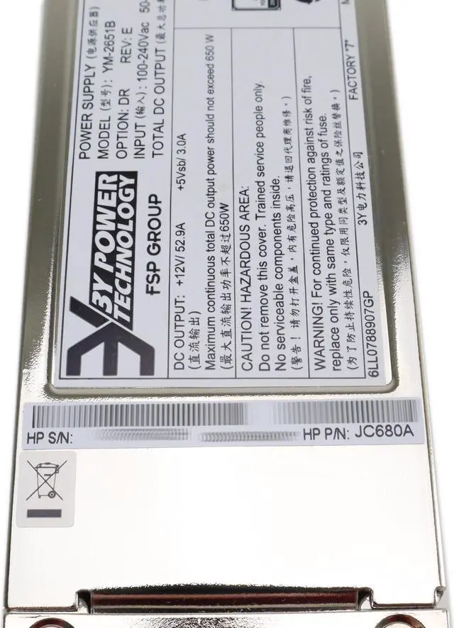 HP AC Power Supply PSU 80+ Silver YM-2651B Input 100-240V 50-60Hz 10-5A 650W A58x0AF JC680A
