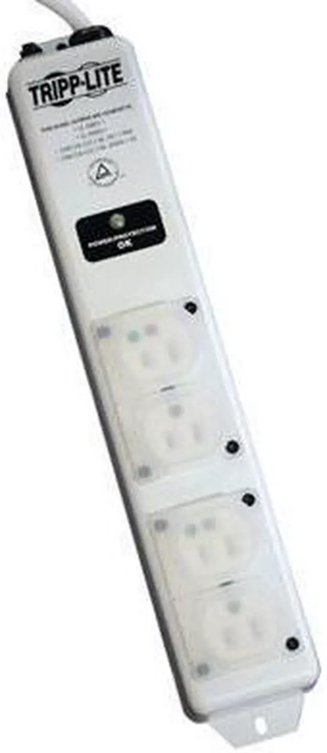 Offering 15A AC power distribution for 120V applications in a rugged all-metal case, Tripp Lite's SPS415HGULTRA is agency approved for use in a variety of healthcare venues, including physicians' offices, imaging centers, laboratories and more. Featuring unique, patented (U.S. No. 7,375,939), it resets automatically with no need for action by the user. Features include switchless design to prevent accidental shutoff, four NEMA 5-15R-HG hospital-grade outlets with safety covers, NEMA 5-15P-HG hospital-grade plug, 15A resettable circuit breaker, and surge protection. Key Features Surge protection Approved for use in Patient-Care Areas Rugged all-metal housing stands up to the most demanding environments 4 x NEMA 5-15R-HG outlets with safety covers 15-ft. cord with NEMA 5-15P-HG plug Switchless design prevents accidental shutoff 15A circuit breaker Multiple installation options with integral mounting flanges and slots UL60601-1 and UL 60950-1 compliant U.S. Patent No. 7,375,939 Typical Applications AC power distribution surge suppression with hospital-grade receptacles and plug in healthcare applications where durability and reliability are required, including areas where NEC requires hospital-grade receptacles Patient rooms, treatment rooms, exam rooms, etc. Package Includes SPS415HGULTRA Medical-Grade Outlet Strip wtih Surge Suppression Owner's manual with warranty information