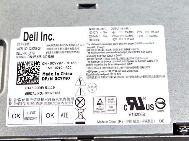 Dell 7GC81 OPTIPLEX 250W POWER SUPPLY