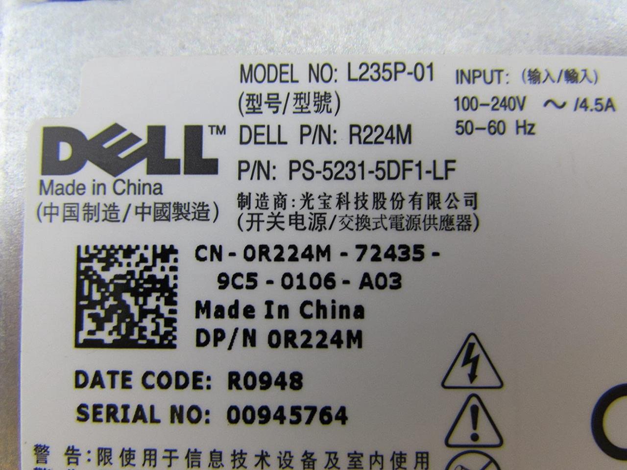 Manufacturer: Dell L235P-01 235W Power Supply