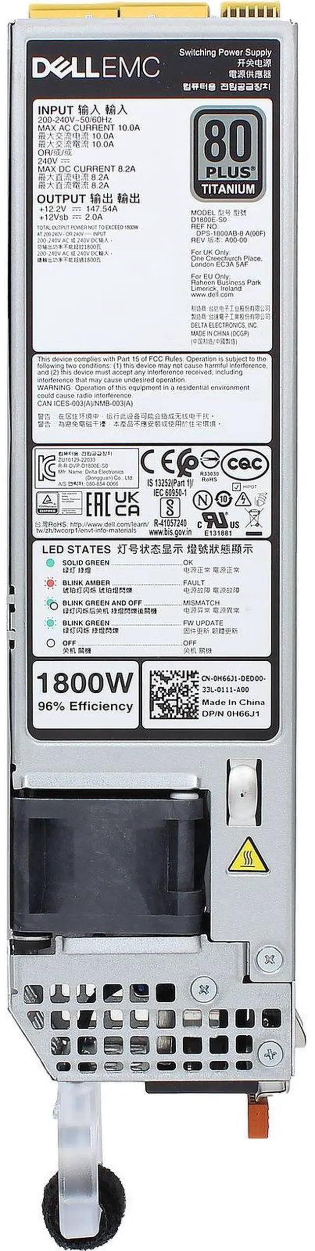 Up for sale is a Dell 15G/16G 1800W 80+ Titanium 60mm HLAC PSU (200-240V ONLY) (H66J1-OSTK). All components are tested and firmware is updated. Dell 15G/16G 1800W 80+ Titanium 60mm HLAC PSU (200-240V ONLY) (H66J1-OSTK)