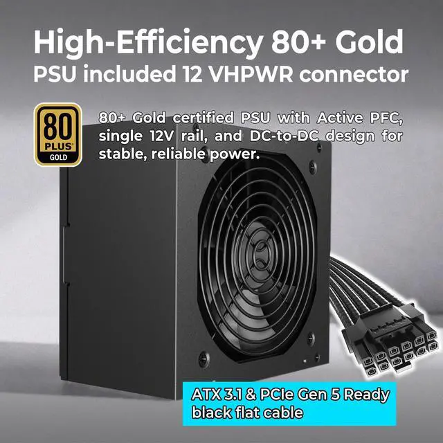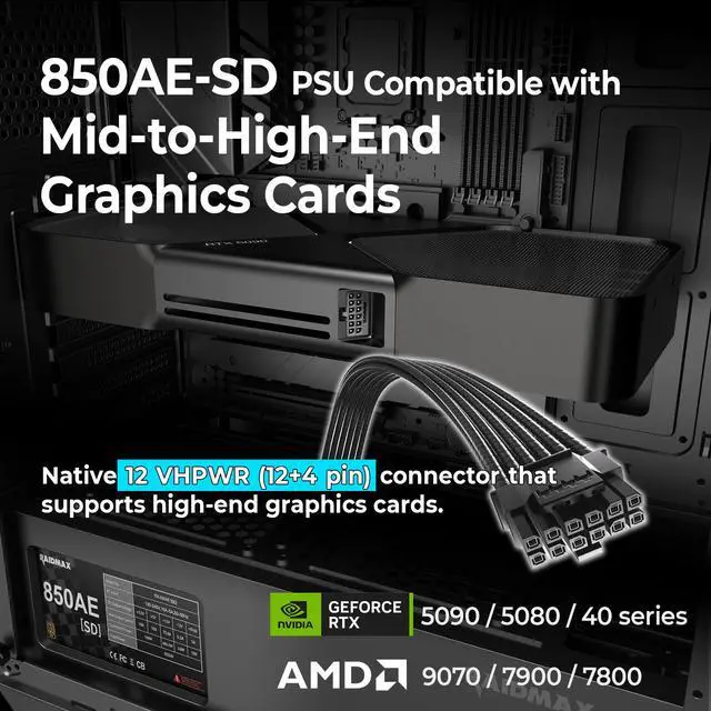Fully ATX 3.1 compliant and PCIe Gen 5 ready, the RX850AESD is designed to support next-generation graphics cards, including NVIDIA RTX 50 series and AMD RX 90 series, handling high transient loads with confidence. Its higher wattage capacity makes it ideal for performance gaming PCs, AI-assisted workloads, and creator systems using powerful GPUs.