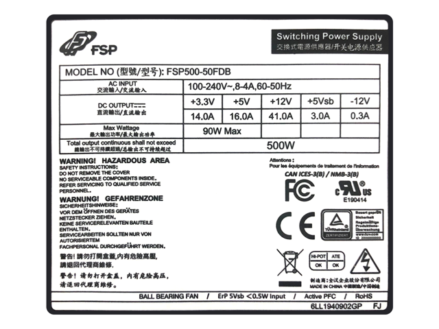 FSP Mini ITX Solution/Flex ATX 500W =90% Efficiency Full Range AC Input Power Supply (FSP500-50FDB)