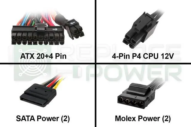 Fan Size: 80mm Connectors 1 x 20+4 pin Main Connector 1 x 4-pin P4 CPU Power Connector 2 x SATA 2 x 4-Pin LP4 •