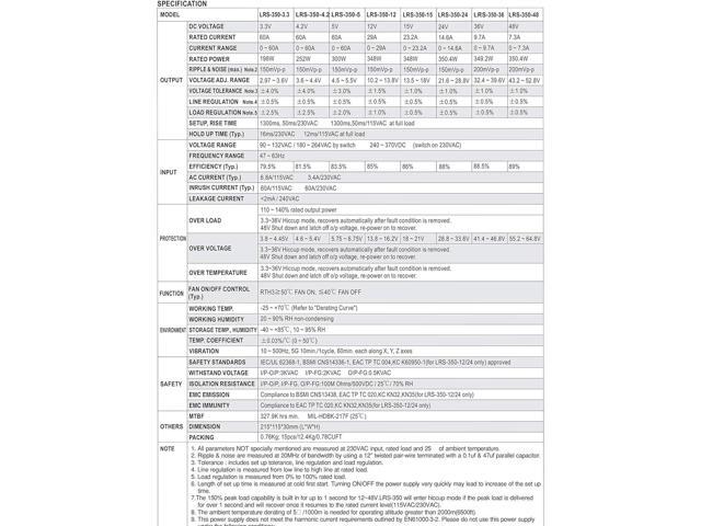 - Full Protections: Short Circuit / Overload / Over Voltage /Over Temperature. Case temperature>50 FAN ON, Case temperature<40 FAN OFF;