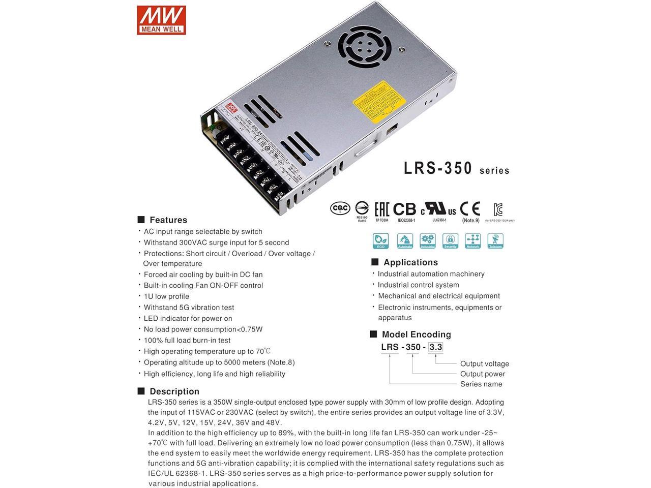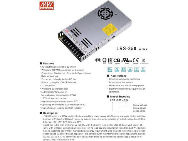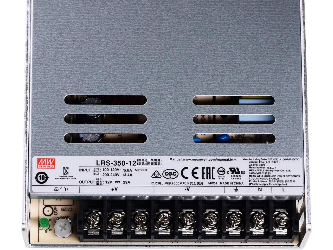 MEAN WELL LRS-350-12 DC Switching Power Supply 12V 29A 350W for CCTV, Computer Project, 3D Printer, LED Strip Light, Router