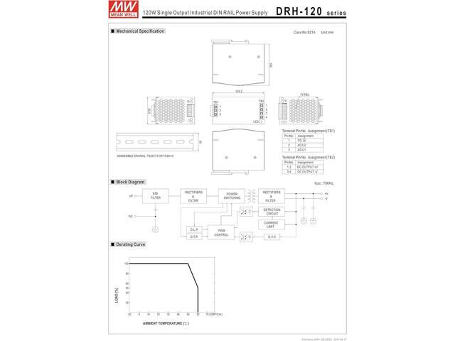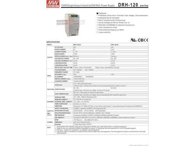 [PowerNex] Mean Well DRH-120-48 24V 5A 120W Single Output Industrial DIN RAIL Power Supply