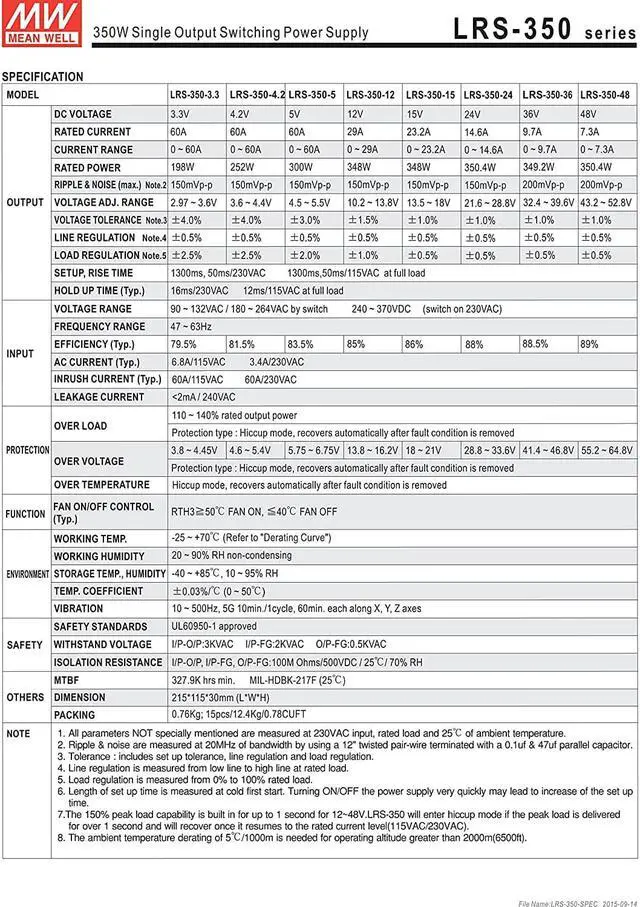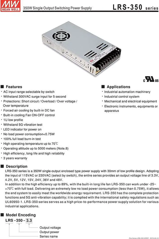 MEAN WELL MW LRS-350-36 36V 9.7A 350W Single Output Switching Power Supply