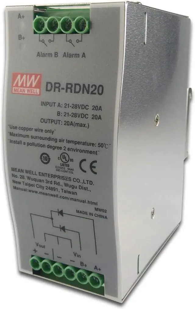 Features: Suitable for redundant operation of 24V system Installed on DIN Rail TS35 / 7.5 or 15 Relay contact signal output and LED indicator for input failure alarm Cooling by free air convection