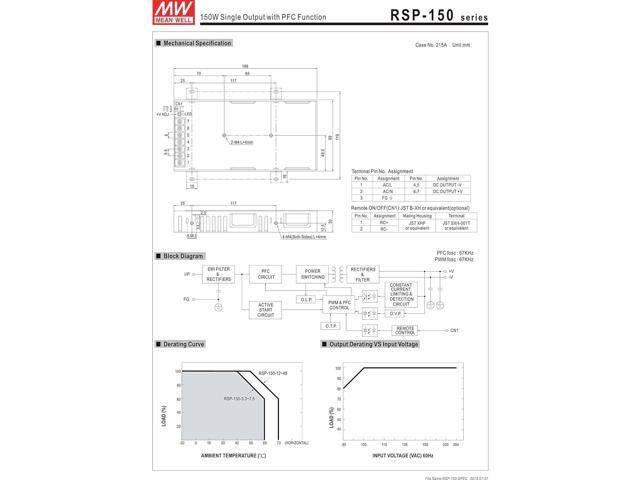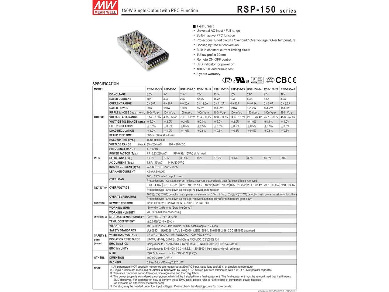 MW Mean Well RSP-150-15 15V 10A 150W Single Output with PFC Function Power Supply