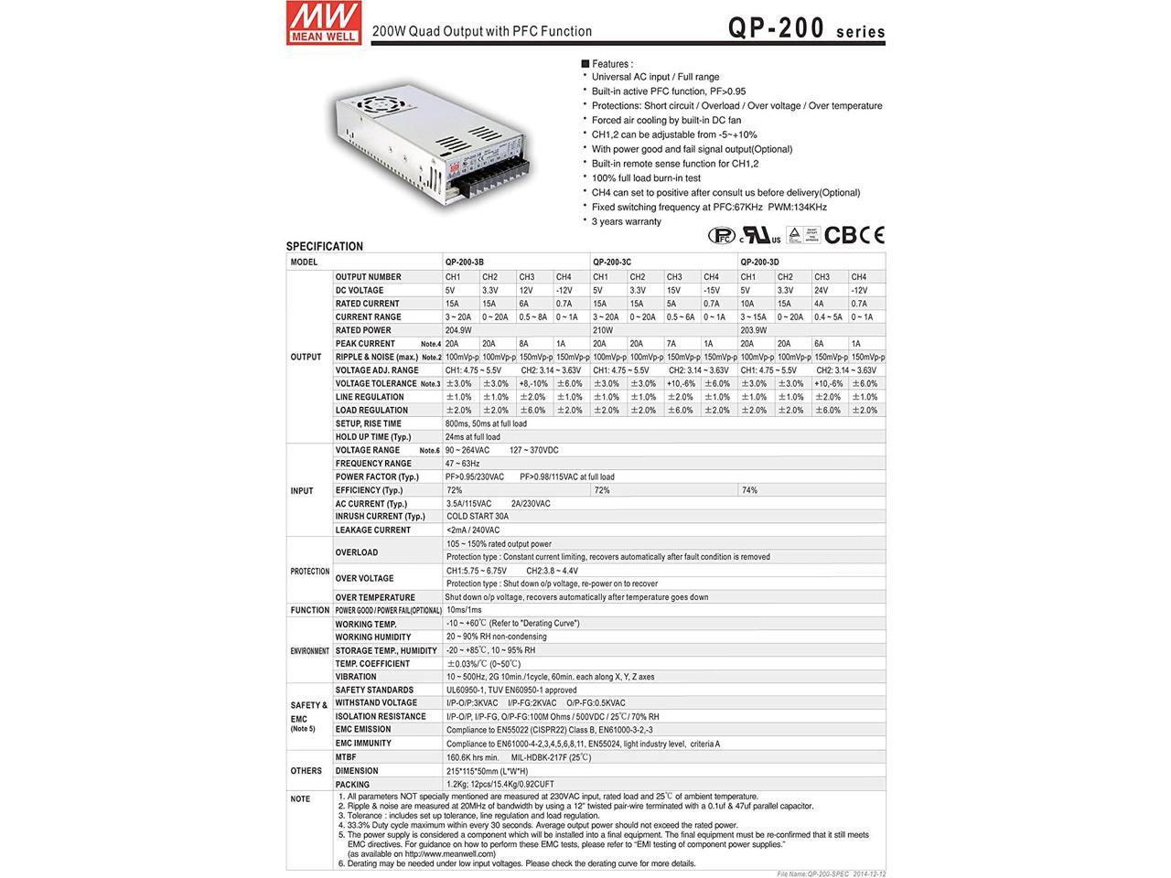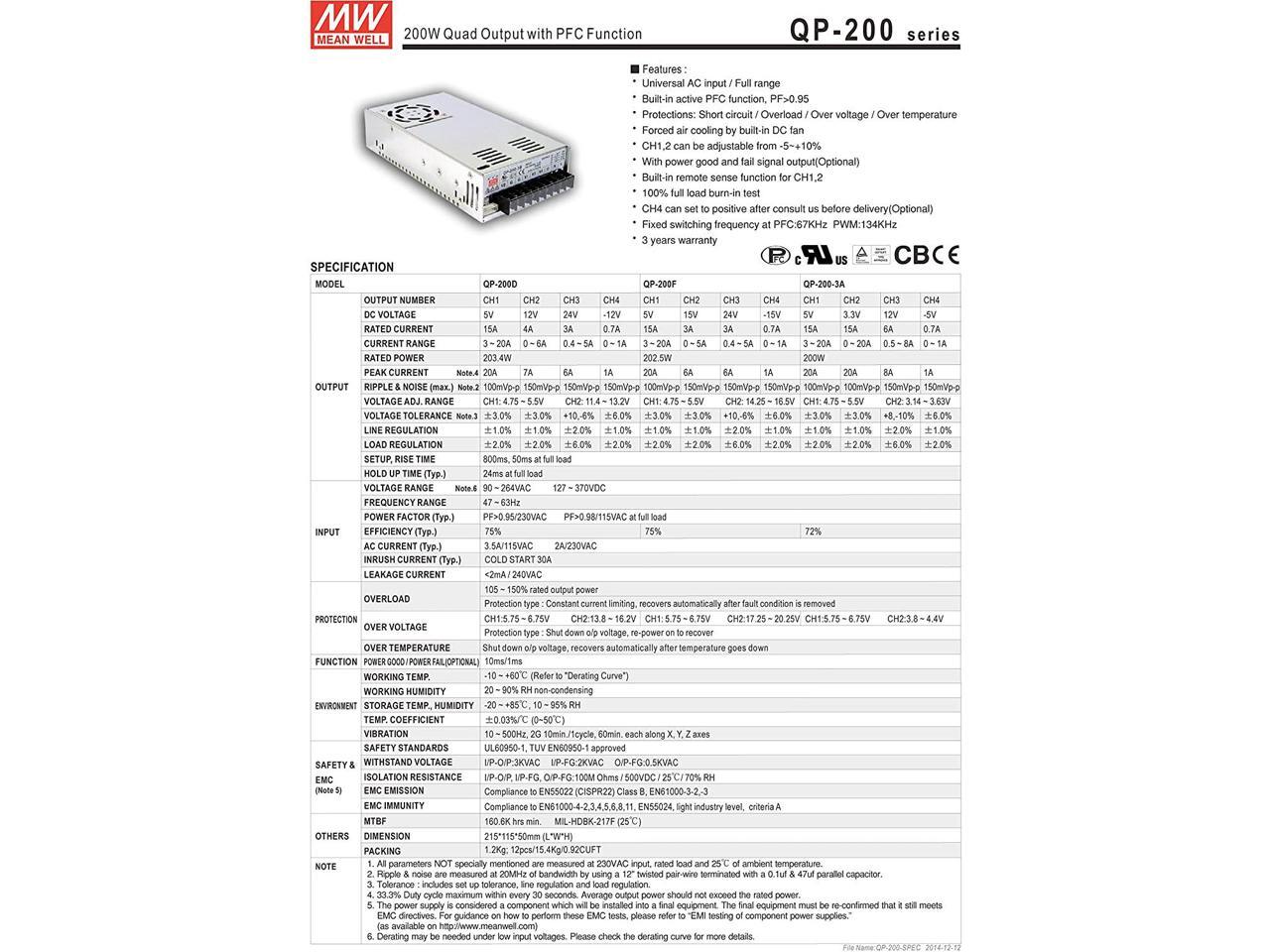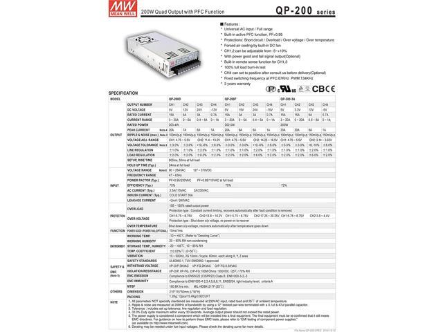 Mean Well Original QP-200F Quad Output with PFC Function Power Supply 5/15/24/-15V 15/3/3/0.9A 200W