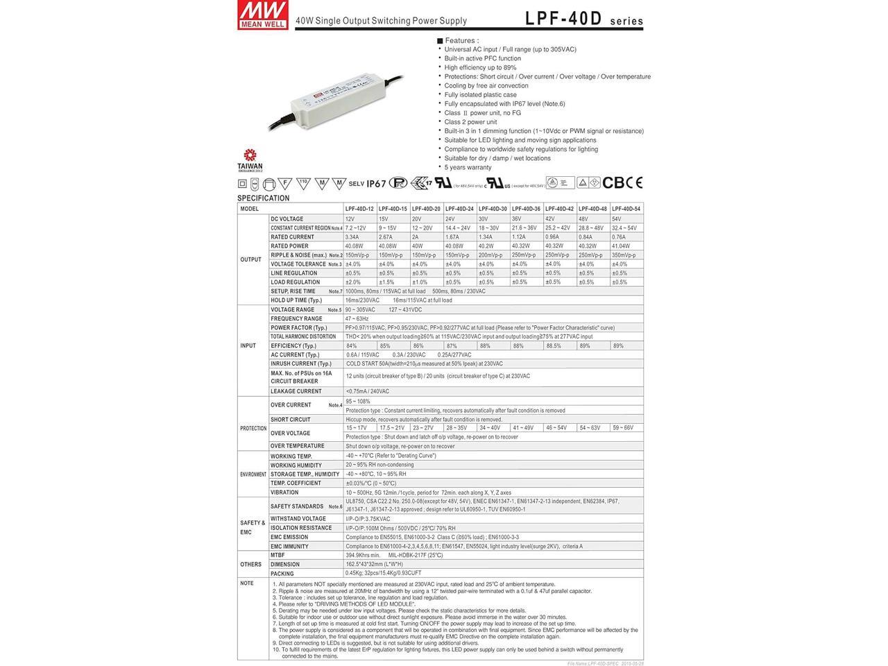 MW Mean Well LPF-40D-30 30V 1.34A 40W Single Output LED Switching Power Supply