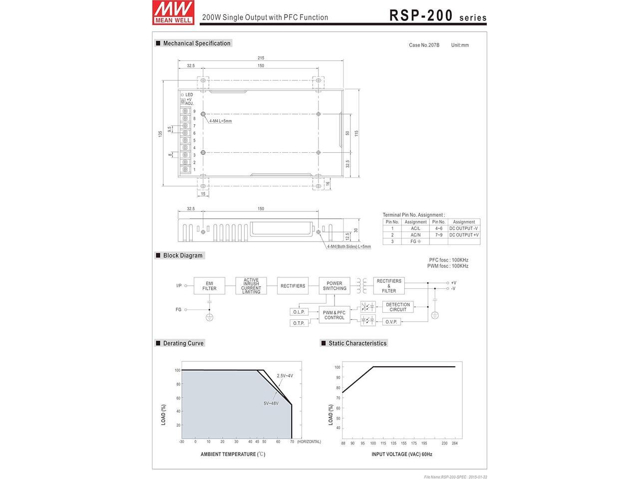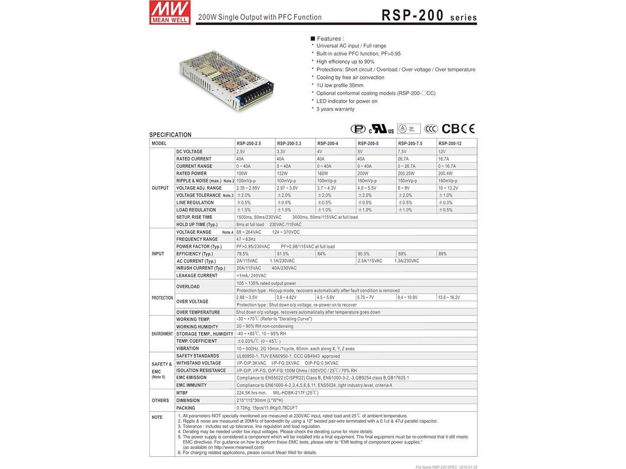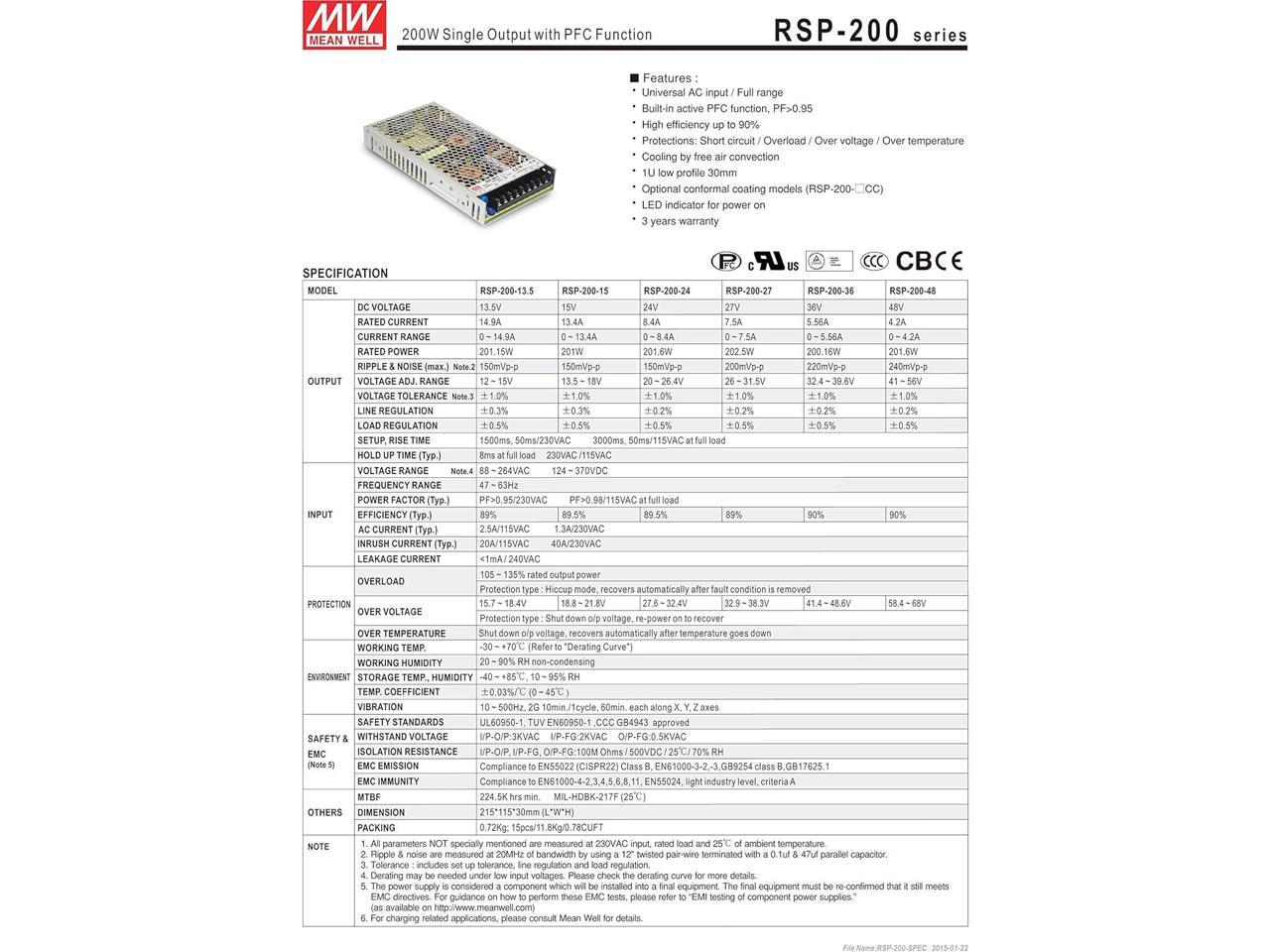 MW Mean Well RSP-200-24 24V 8.4A 201.6W Single Output with PFC Function Power Supply