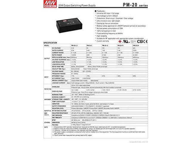 MEAN WELL Modular Medical Adapter 22.08W 24V 0.92A PM-20-24 Meanwell AC-DC SMPS PM-20 Series Switching Power Supply