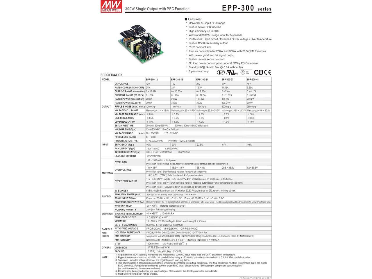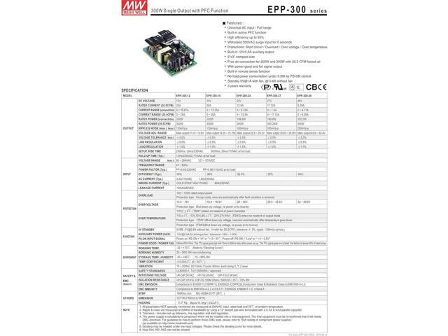 MW Mean Well EPP-300-12 12V 25A 300W Single Output with PFC Function Power Supply