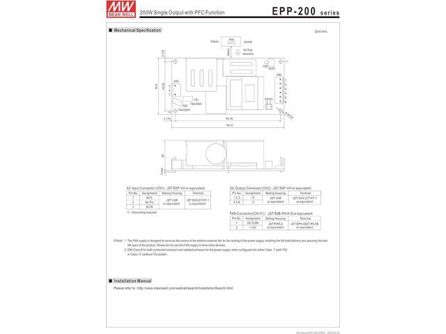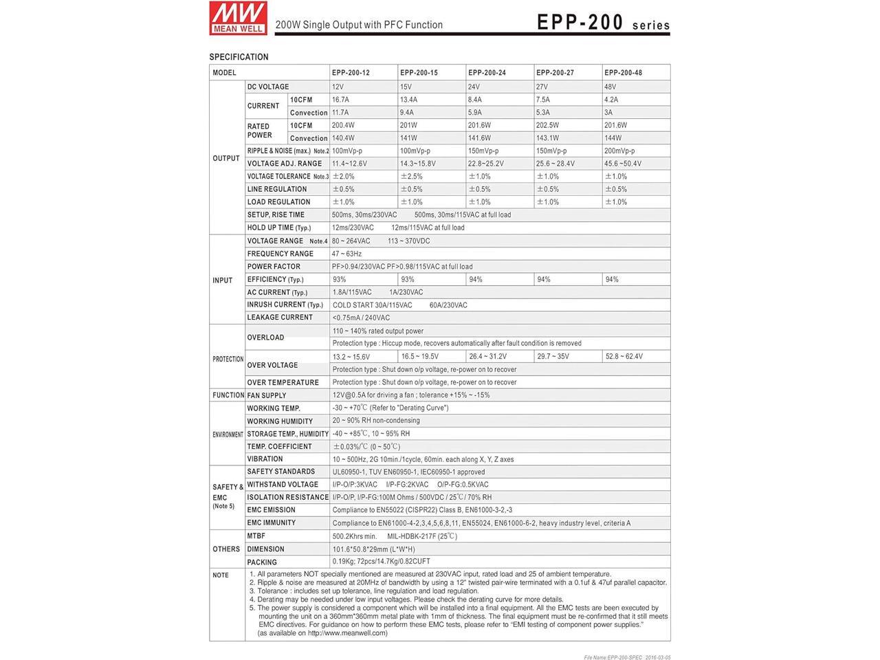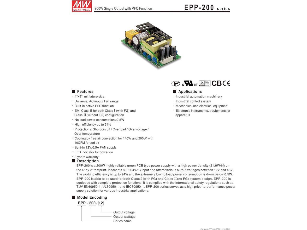 MW Mean Well EPP-200-15 15V 13.4A 200W Single Output with PFC Function Power Supply