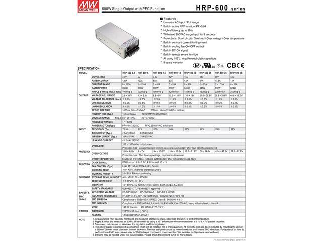 [PowerNex] Mean Well HRP-600-3.3 3.3V 120A 396W Single Output with PFC Function Power Supply