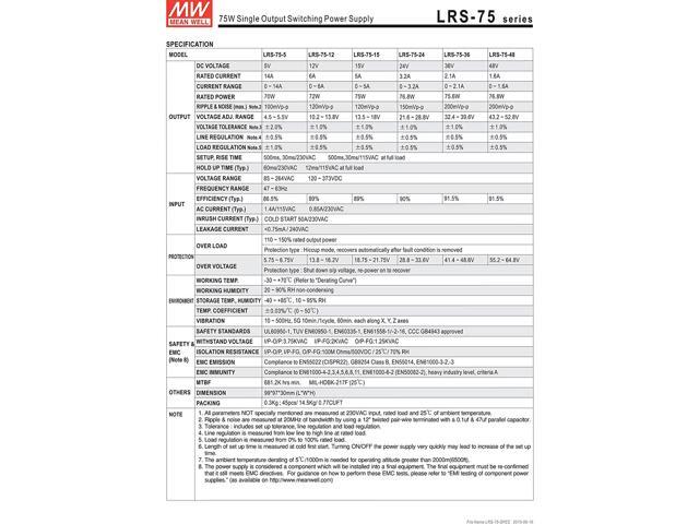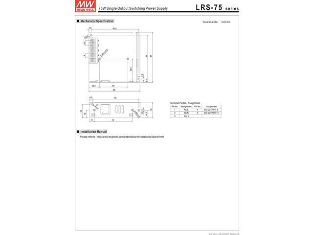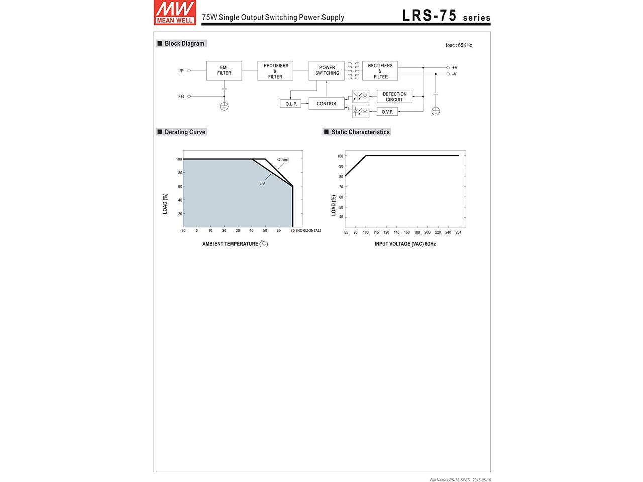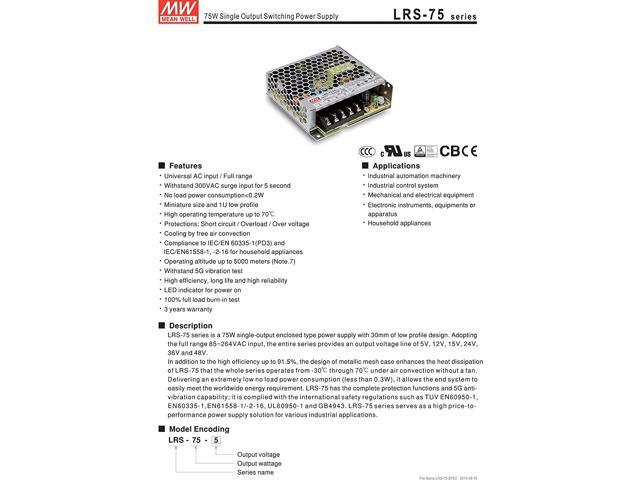 MW Mean Well LRS-75-15 15V 5A 75W Single Output Switching Power Supply