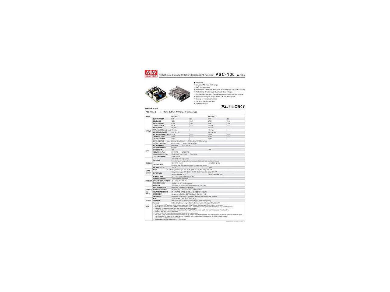 PCB Type Security 100.05W 13.8V CH1,4.75A;CH2,2.5A PSC-100A Meanwell AC-DC PSC-100 MEAN WELL Switching Power Supply