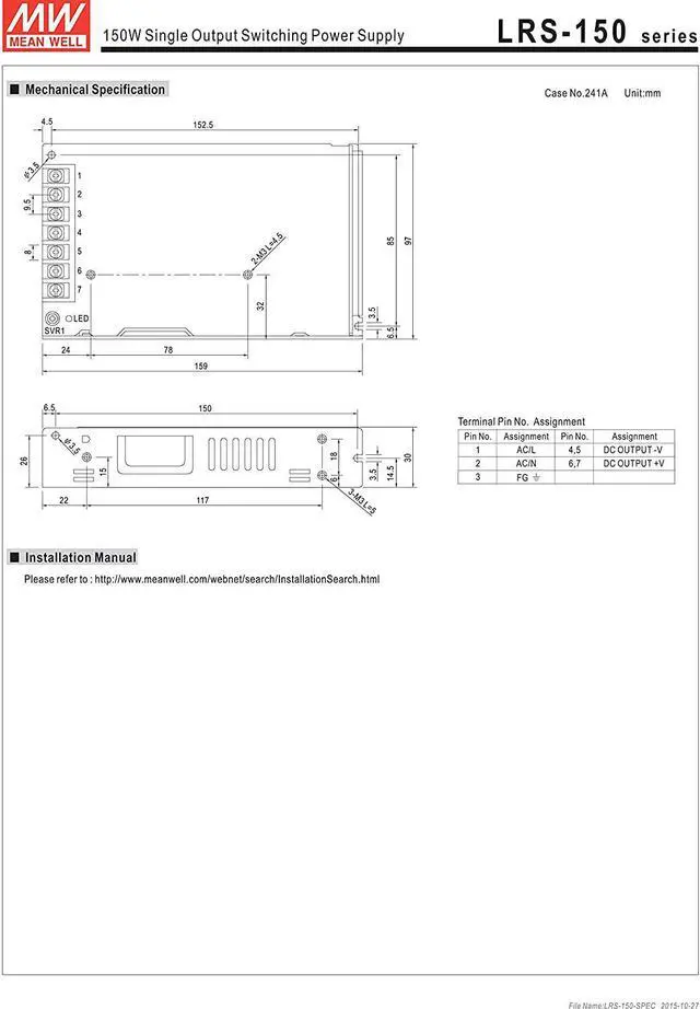 MW Mean Well LRS-150-48 48V 3.3A 150W Single Output Switching Power Supply