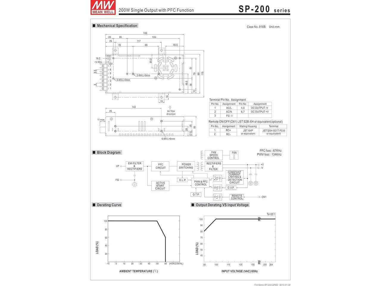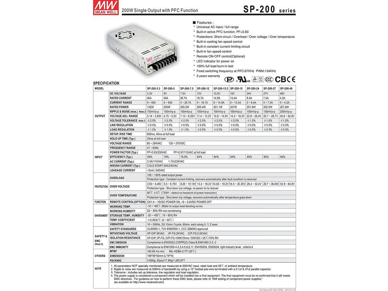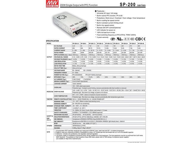 Mean Well Original SP-200-13.5 Single Output with PFC Function Power Supply 13.5V 14.9A 200W