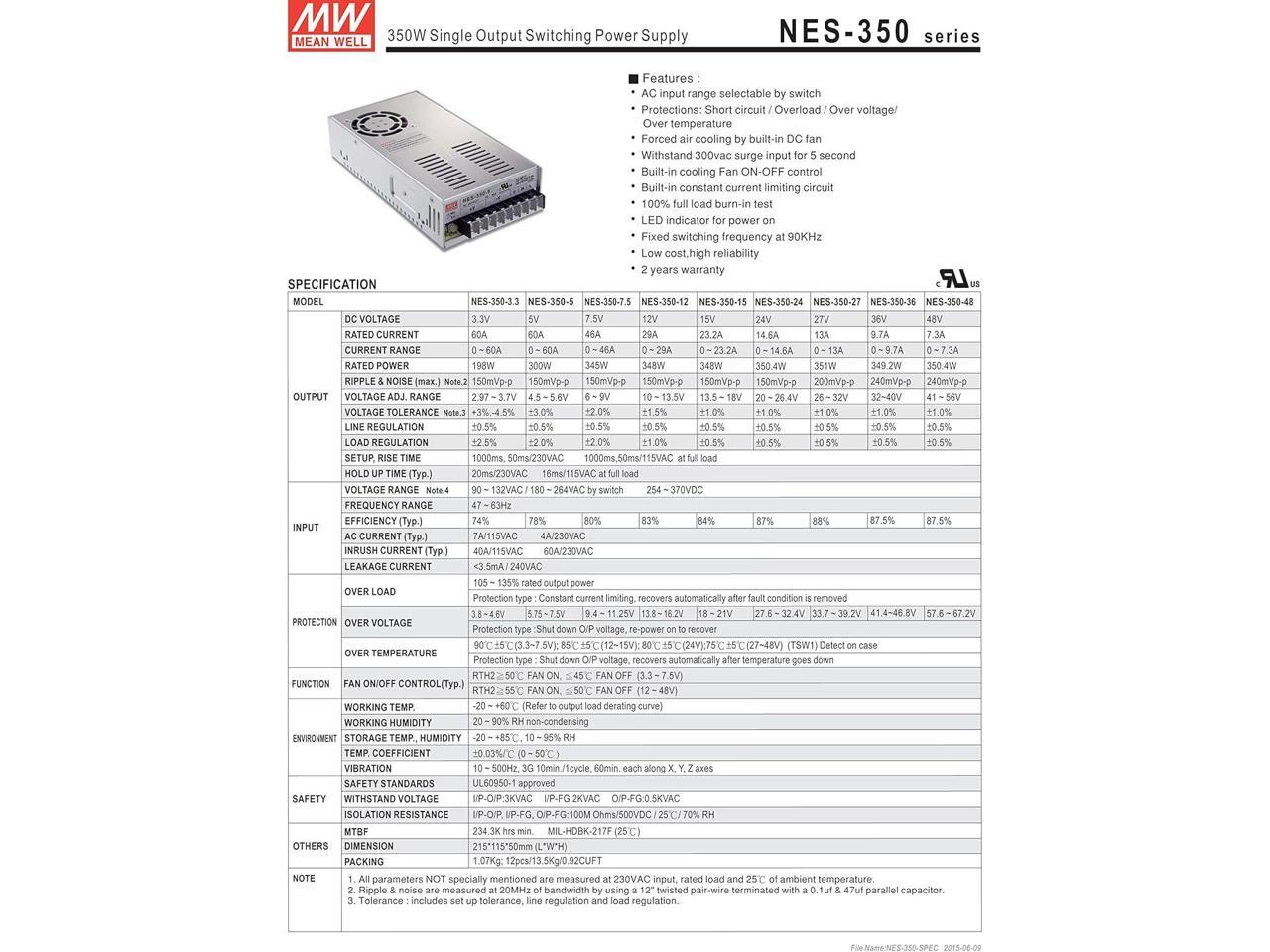 MEAN WELL MW NES-350-48 48V 7.3A 350W Single Output Switching Power Supply