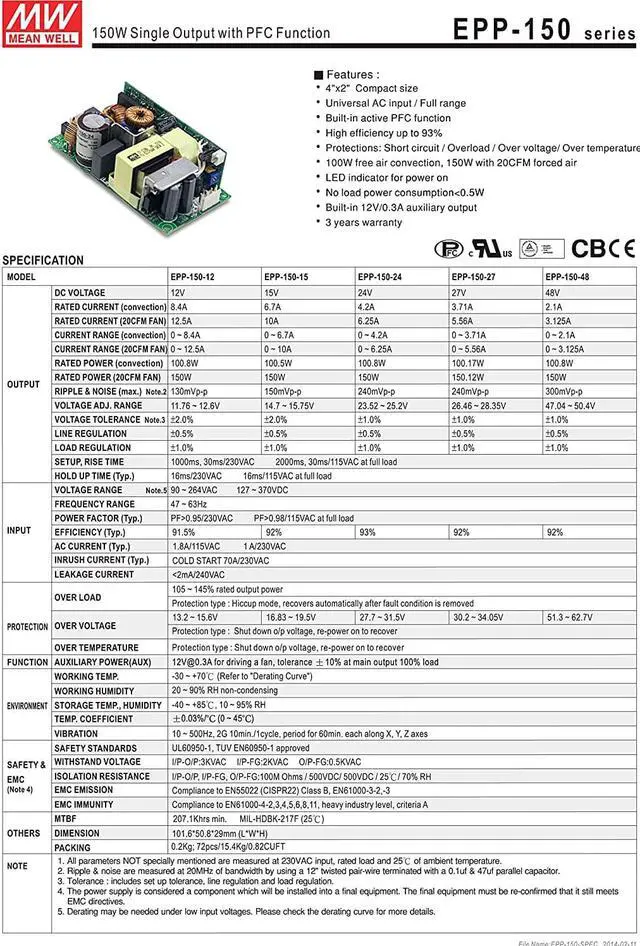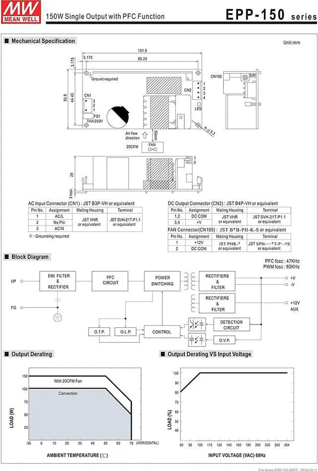 Standby 5V@1A with fan, @0.6A without fan (EPP-300/400)