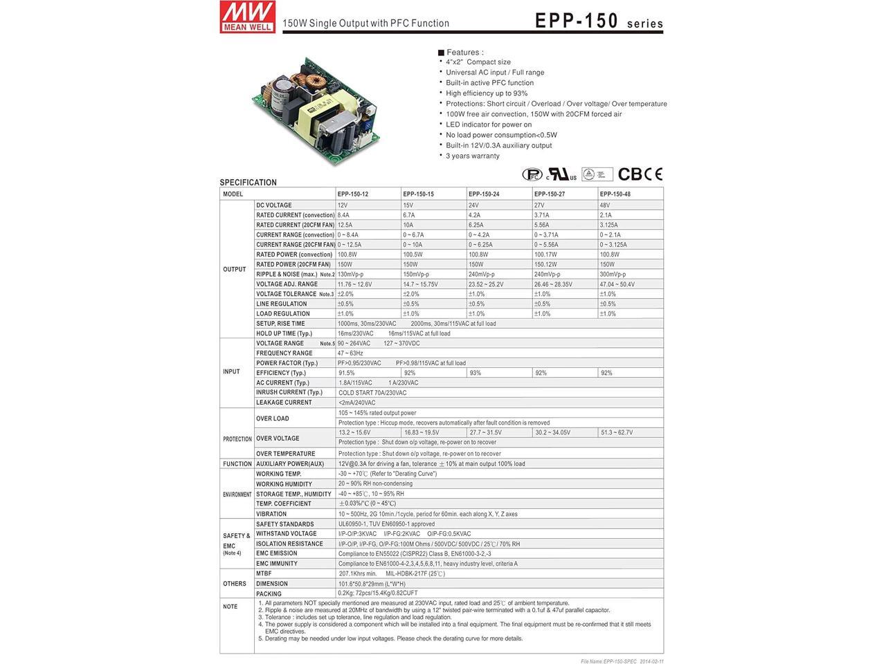 MW Mean Well EPP-150-48 48V 3.125A 150W Single Output with PFC Function Power Supply