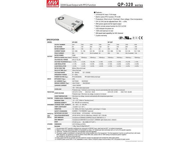 [PowerNex] Mean Well QP-320D 5V +/-12V 24V 2A 3A 10A 20A 316W Quad Output with PFC Function Power Supply