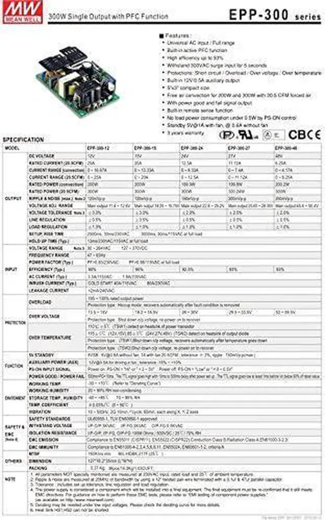 Output 300W 24V 12.5A. Actual inventory and quick shipment. Typical Standard shipping is about 7-12 days, more than 2kg possible ship by DHL / FEDEX about 3-5 days.