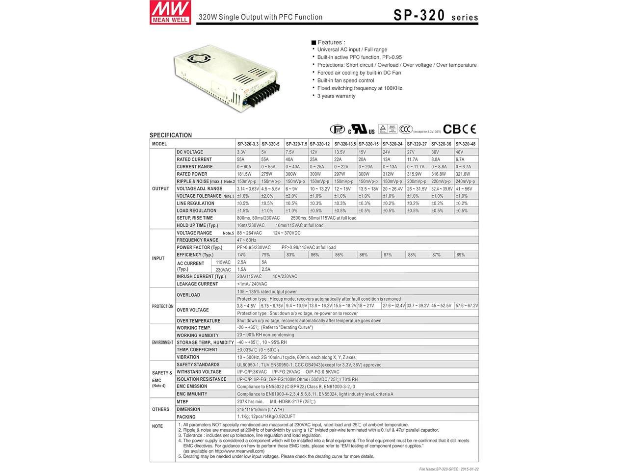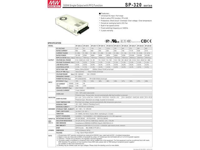 MW Mean Well SP-320-48 48V 6.7A 320W Single Output with PFC Function Power Supply