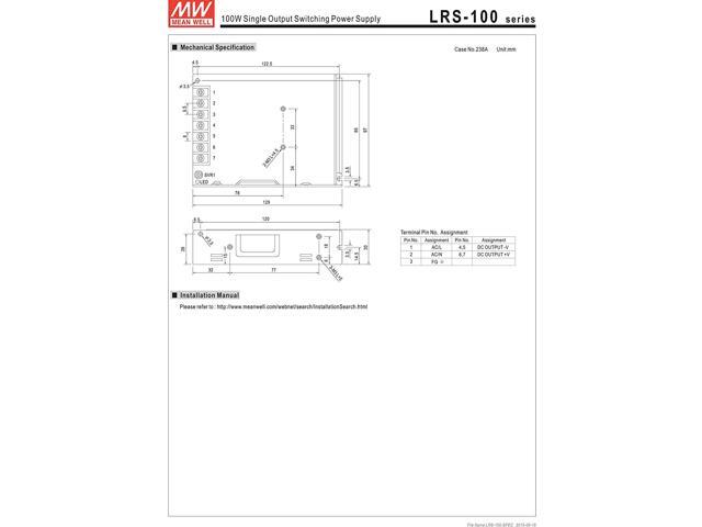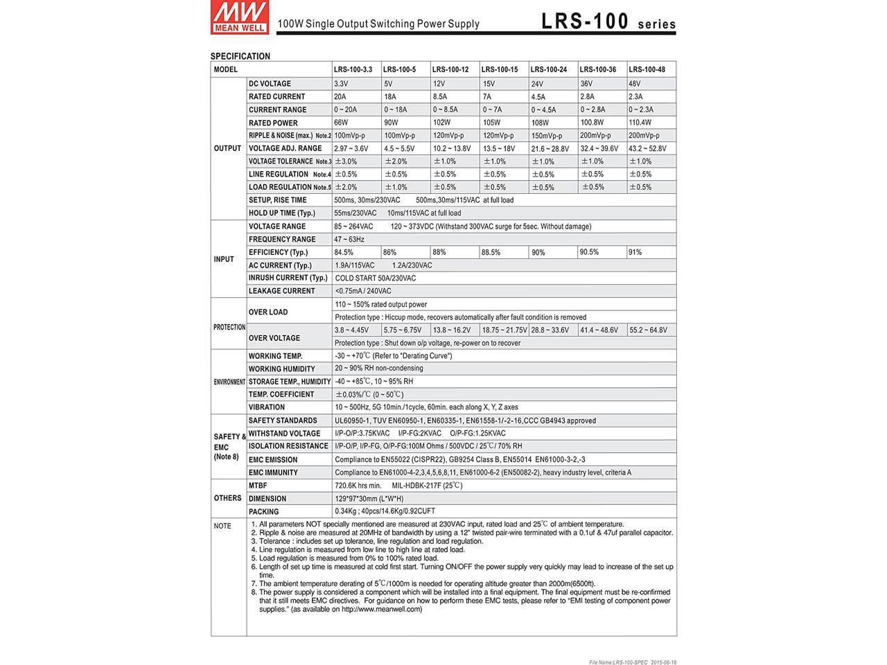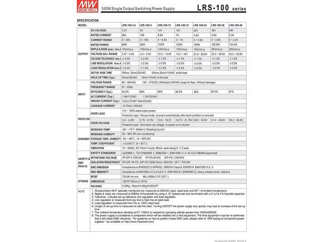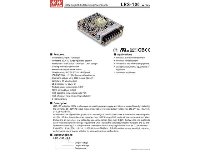 MW Mean Well LRS-100-5 5V 18A 90W Single Output Switching Power Supply