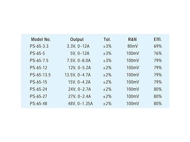 Industrial Open Frame 62.4W 12V 5.2A PS-65-12 Meanwell AC-DC Single Output PS-65 MEAN WELL Switching Power Supply