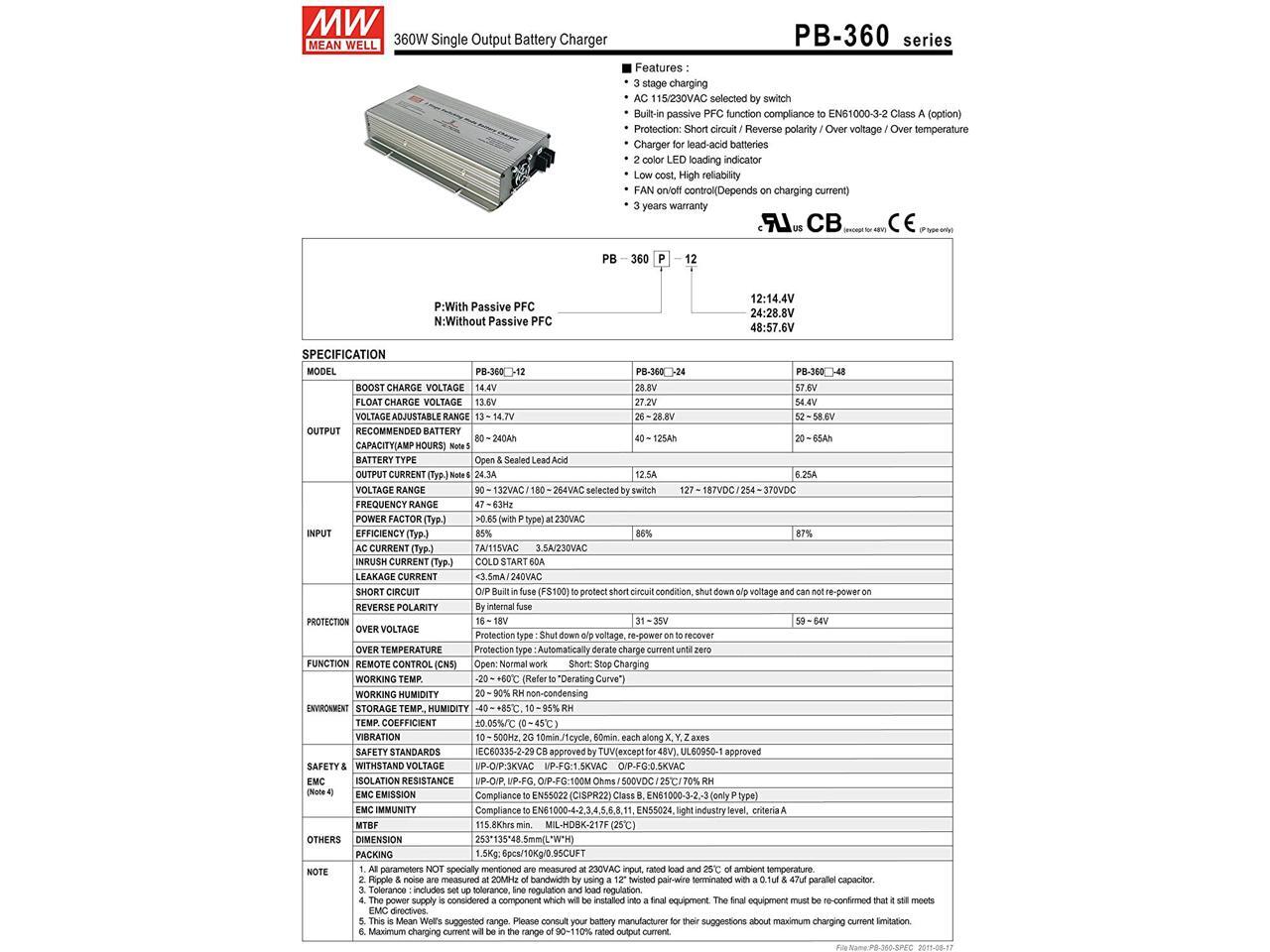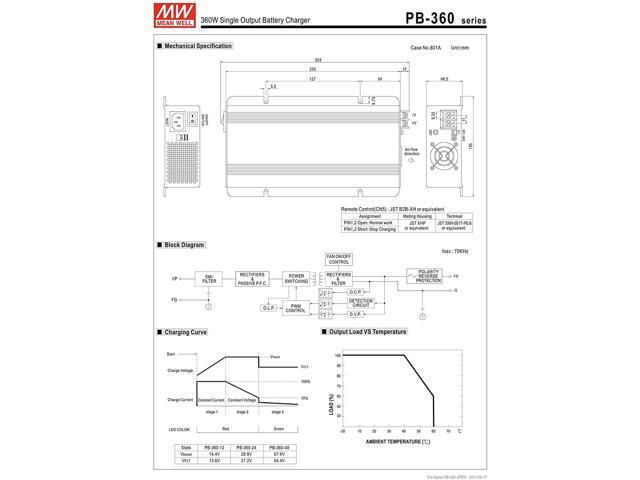 MW Mean Well PB-360N-12 14.7V 24.3A Single Output Battery Charger