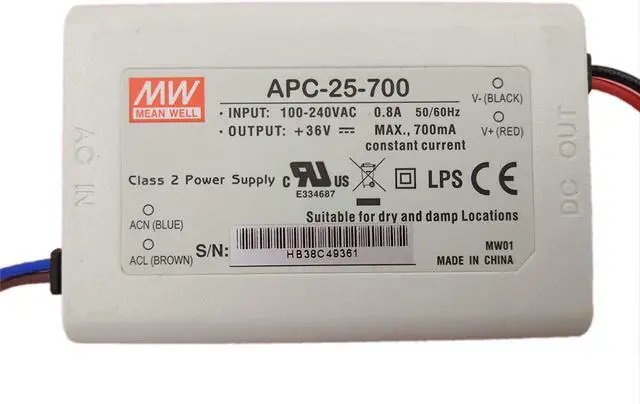 94V-0 flame retardant plastic case Class 2 power unit / Pass LPS (except for APC-8, APC-25-350 & APC-35-350/500)