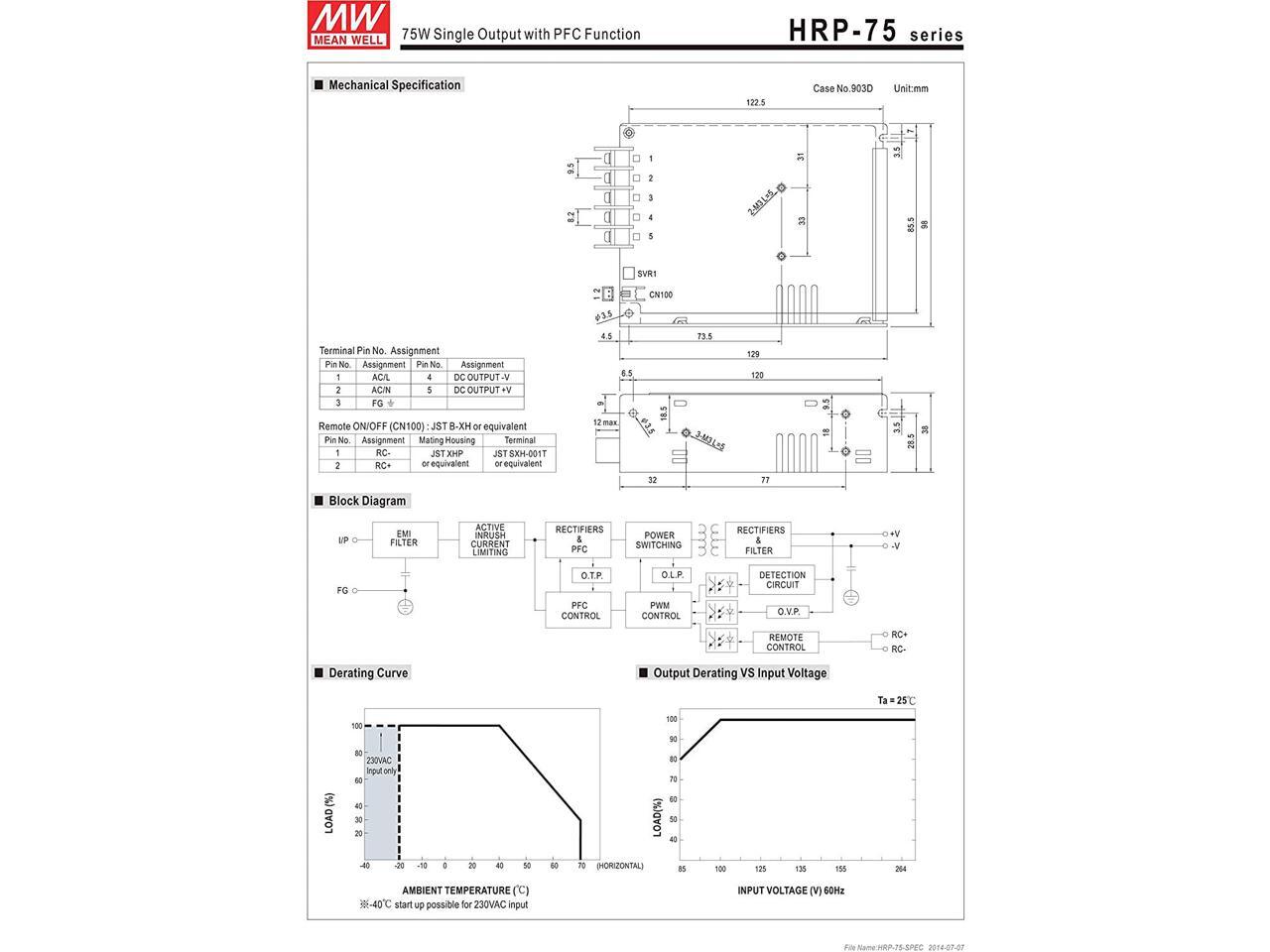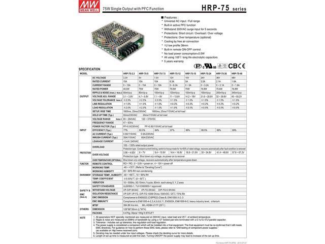 [PowerNex] Mean Well HRP-75-7.5 7.5V 10A 75W Single Output with PFC Function Power Supply
