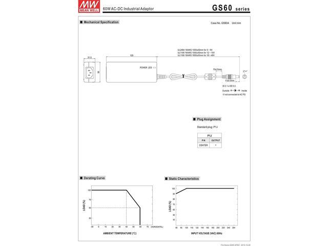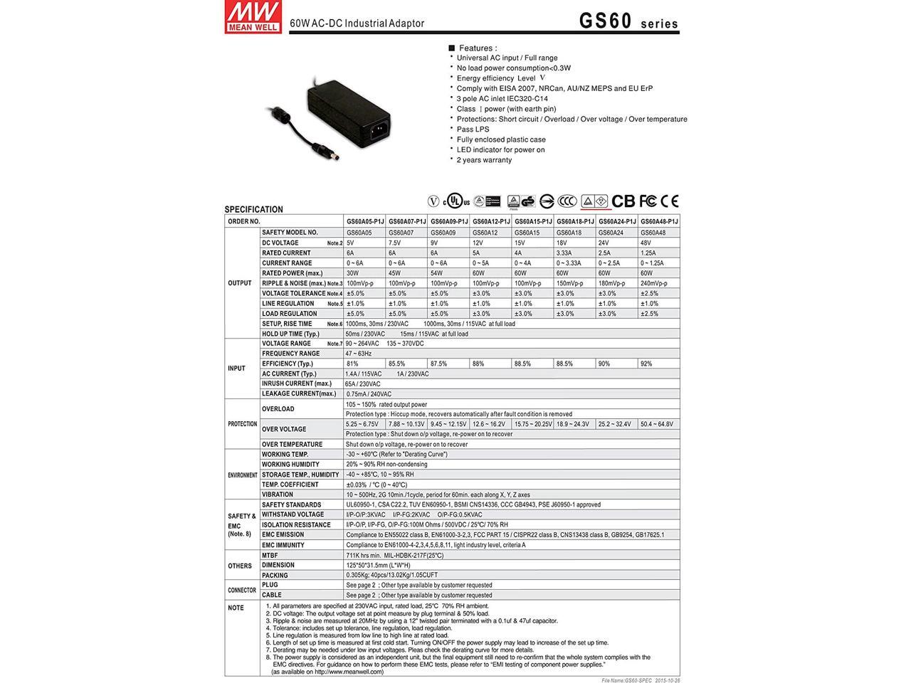 MW Mean Well GS60A05-P1J 5V 6A 30W AC-DC Green Industrial Adaptor