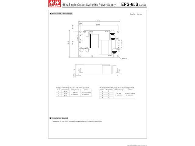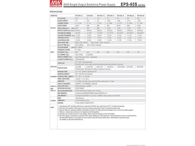 MW Mean Well EPS-65S-12 12V 5.42A 65W Single Output Switching Power Supply
