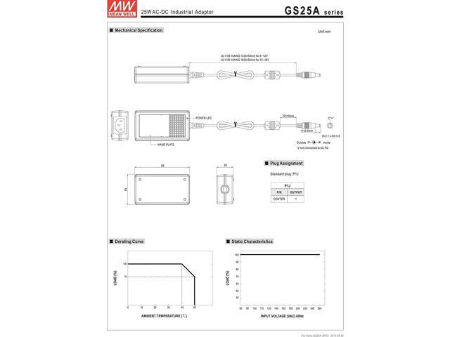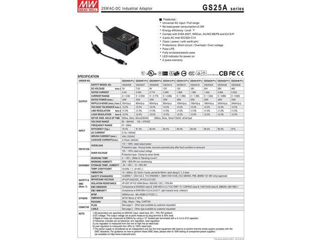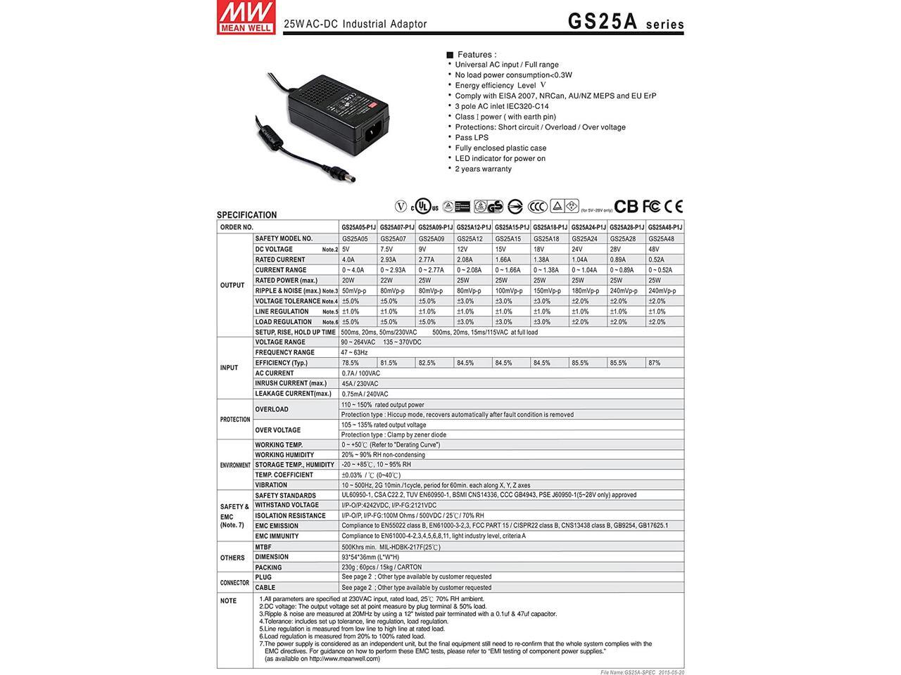 Mean Well Original GS25A12-P1J AC-DC Green Industrial Adaptor 12V 2.08A 25W