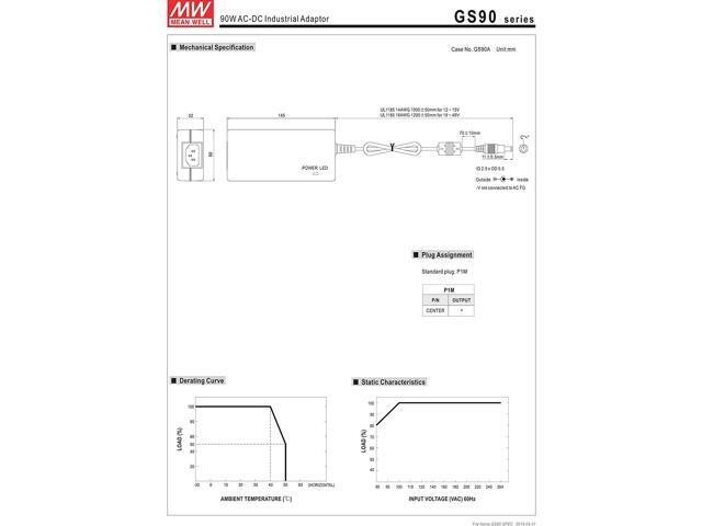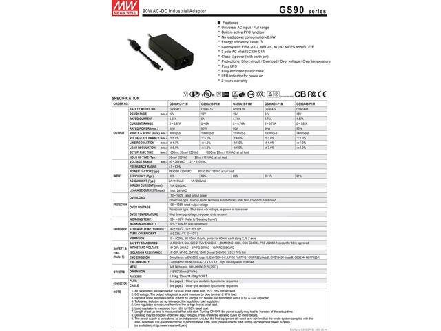 MEAN WELL MW GS90A24-P1M 24V 3.75A 90W AC-DC Green Industrial Adaptor