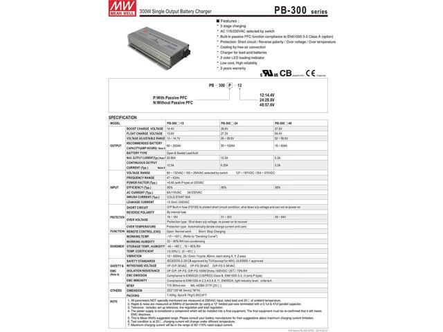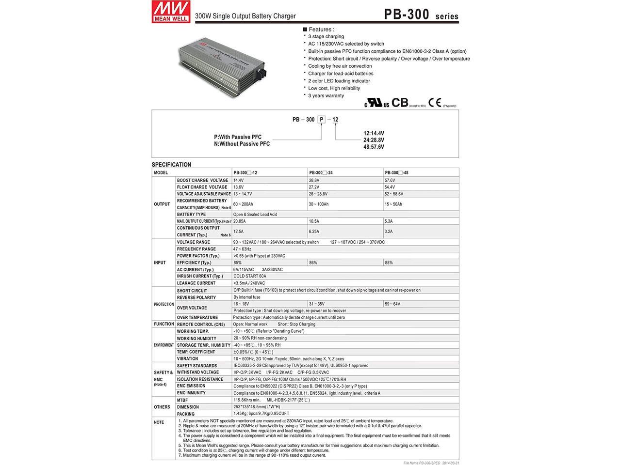 MW Mean Well PB-300P-24 28.8V 10.5A Single Output Battery Charger