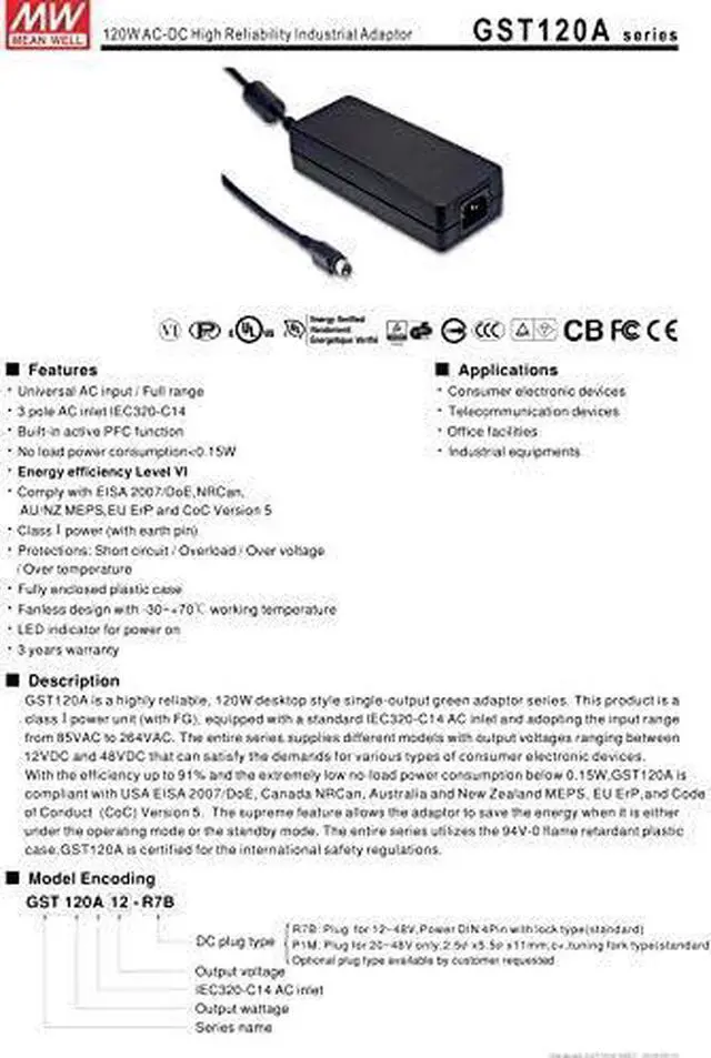 GST series of green energy-saving high-end enterprise level adapters can work continuously for a long time in 7x24 hours. Is widely used in IT, security, industrial control, LED lighting and other fields. Type A in line with European safety standards multi medium new.
