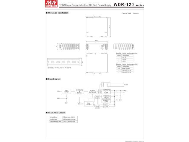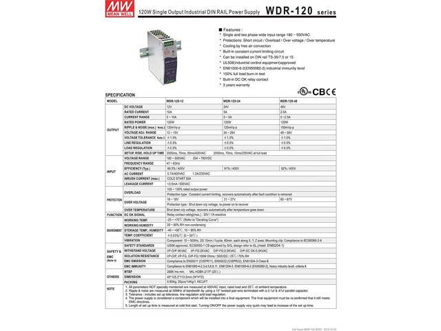 MW Mean Well WDR-120-12 12V 10A 120W Single Output Industrial DIN RAIL Power Supply
