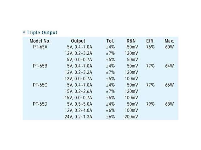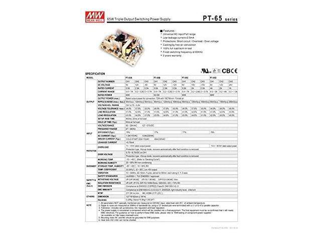 Industrial Open Frame 63.5W PT-65B Meanwell AC-DC Triple Output PT-65 Series MEAN WELL Switching Power Supply