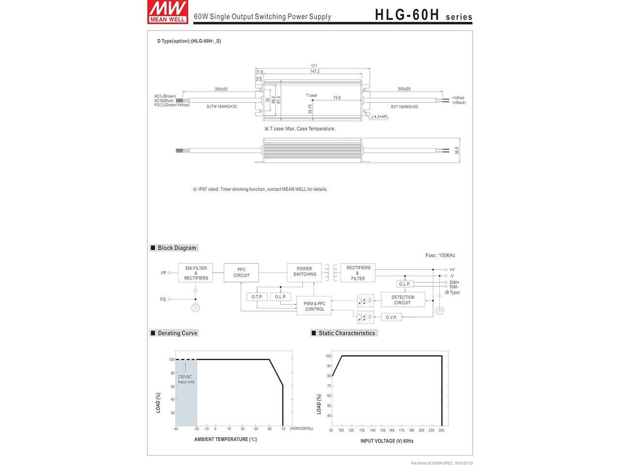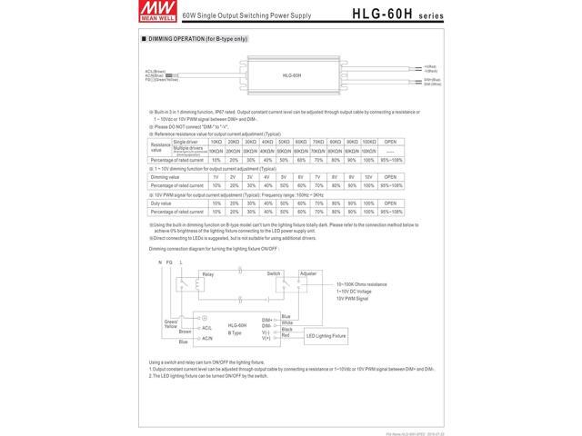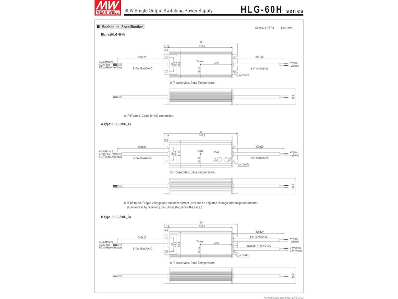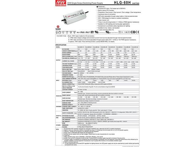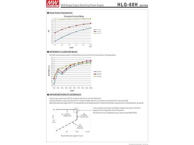 MW Mean Well HLG-60H-48A 48V 1.3A 60W Single Output LED Switching Power Supply